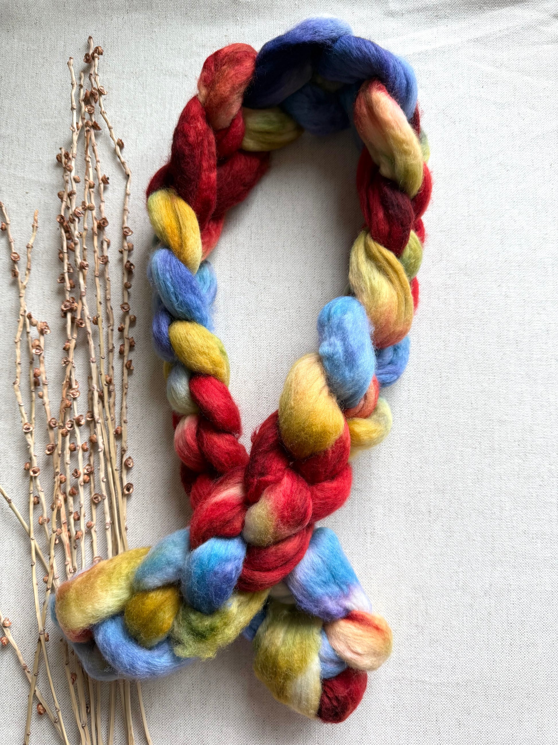 Merino is a perfect choice for spinning or felting. It's super soft, wonderful to work with and one of my favorites to spin and knit with. This top is such joy to spin for both the beginners and the experienced. It's a super soft, bouncy fiber and can be used in a number of ways to create a beautiful project.