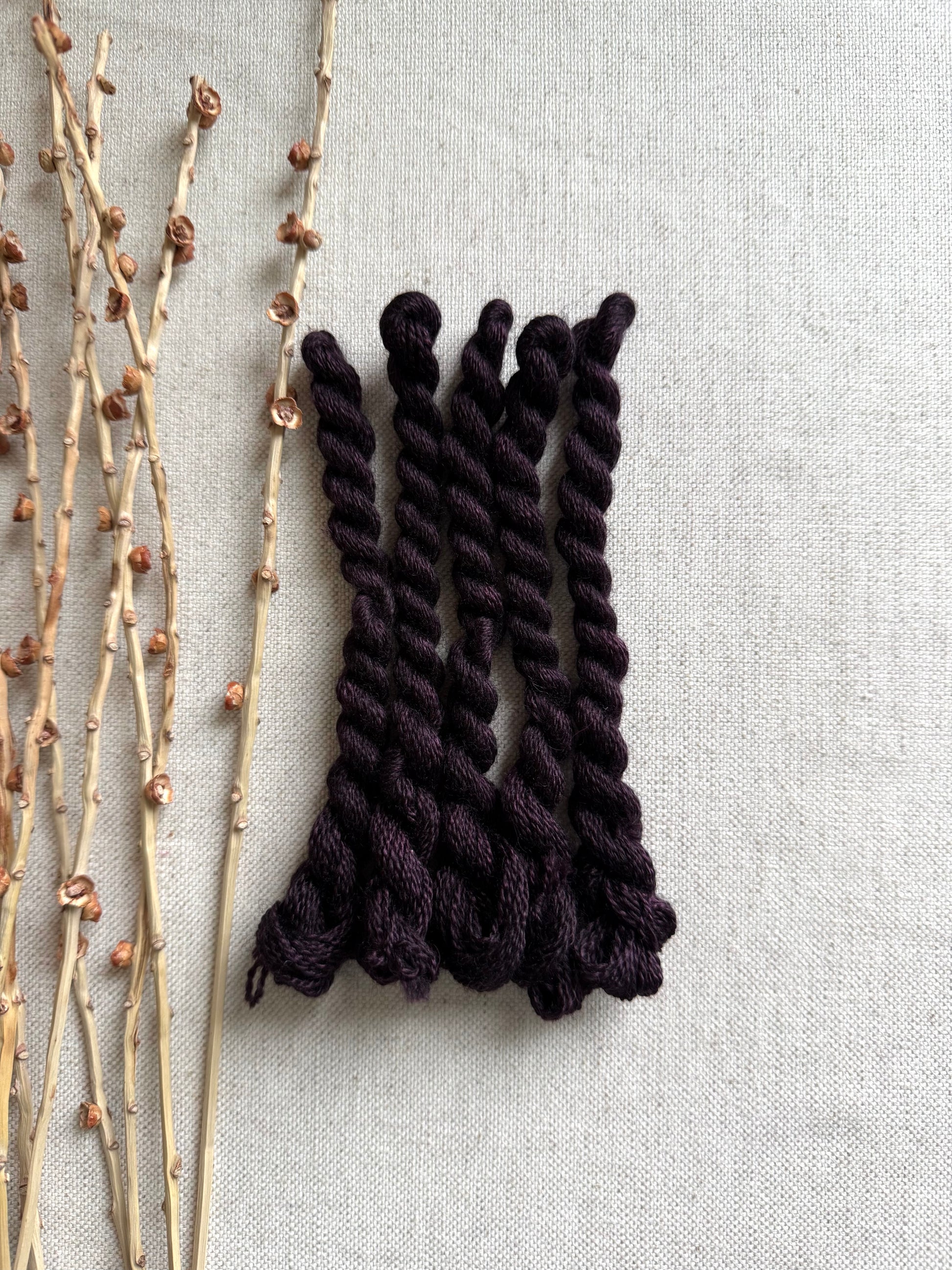 I'm so excited to be offering my NEW line of embroidery thread. I love sitting down with a few colors of embroidery thread, a piece of linen along with a needle and creating a needlepoint or stitchery creation. It's also just perfect for the mending projects like your hand knitted sock or you worn pair of jeans. This combination of BFL and silk is really lovely to work with. I'll be continually adding new colors as I dye them so check back often.