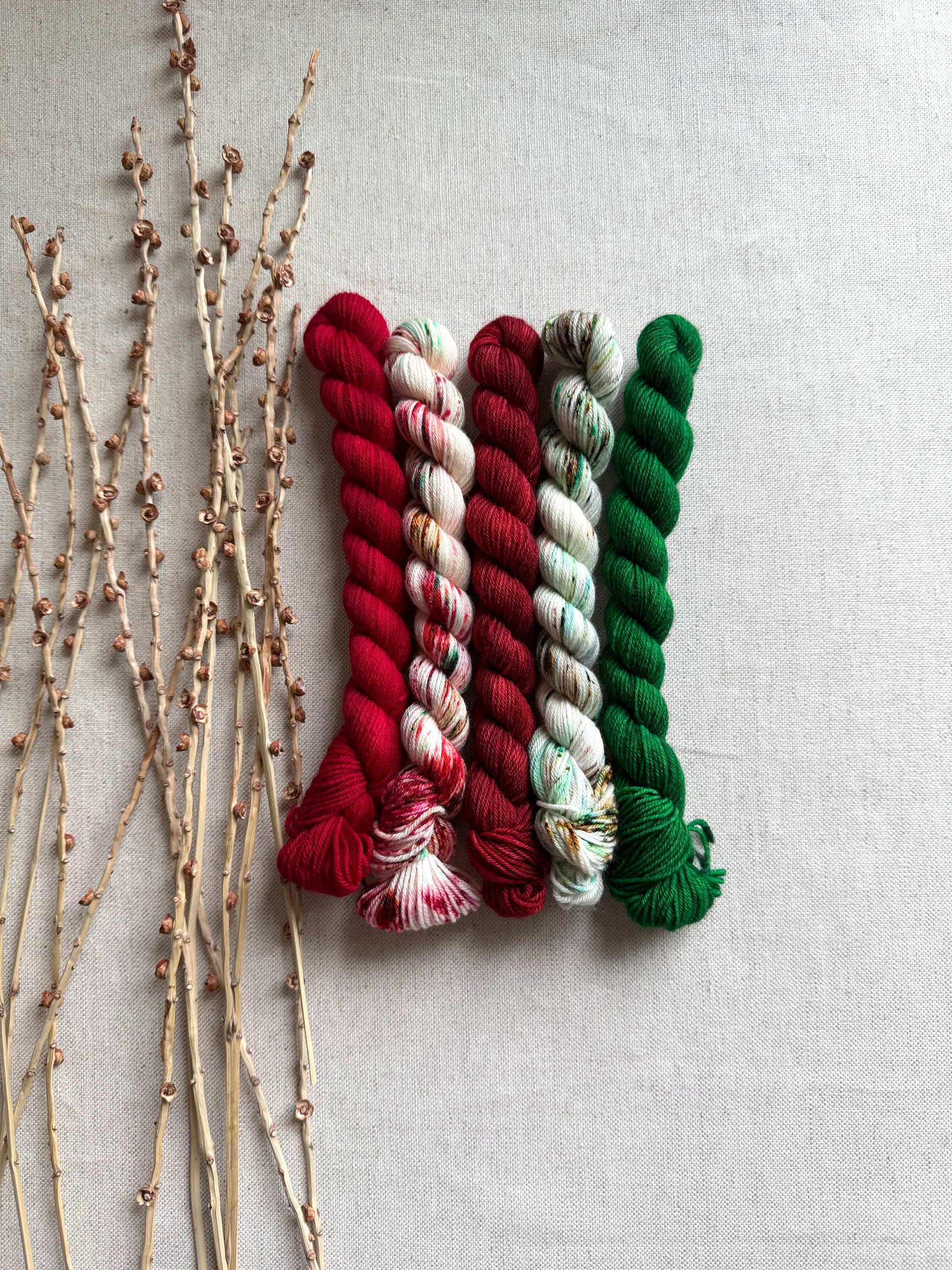 These mini skeins are 87 yards of super soft superwash merino nylon in speckled colors. As with most of my hand dyed yarn, they're one of a kind and not necessarily repeatable. They're the perfect about of yarn for knitting scrappy projects, gnomes, and other stuffed creatures.