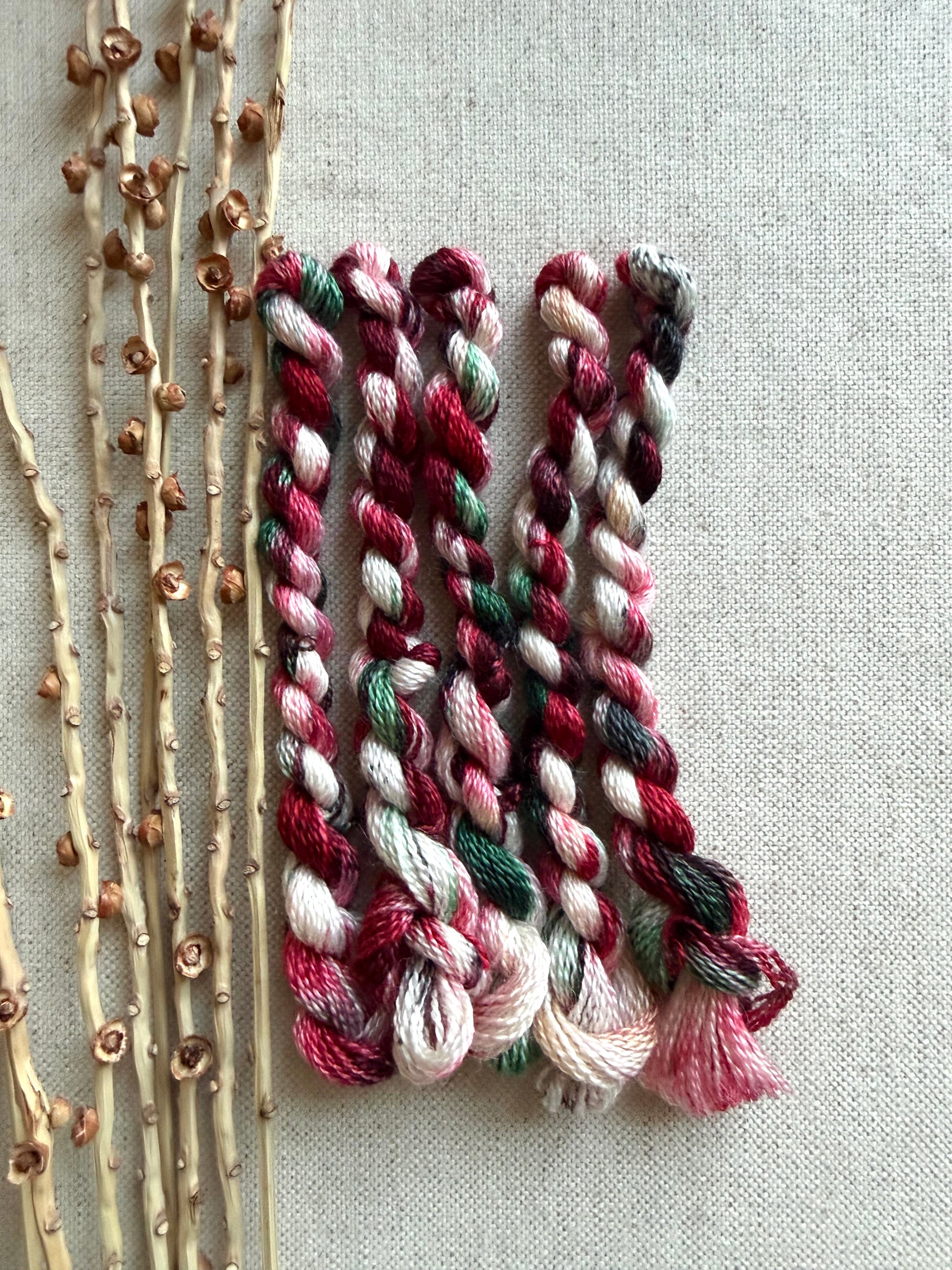 I'm so excited to be offering my NEW line of embroidery thread. I love sitting down with a few colors of embroidery thread, a piece of linen along with a needle and creating a needlepoint or stitchery creation. It's also just perfect for the mending projects like your hand knitted sock or you worn pair of jeans. This combination of BFL and silk is really lovely to work with. I'll be continually adding new colors as I dye them so check back often.