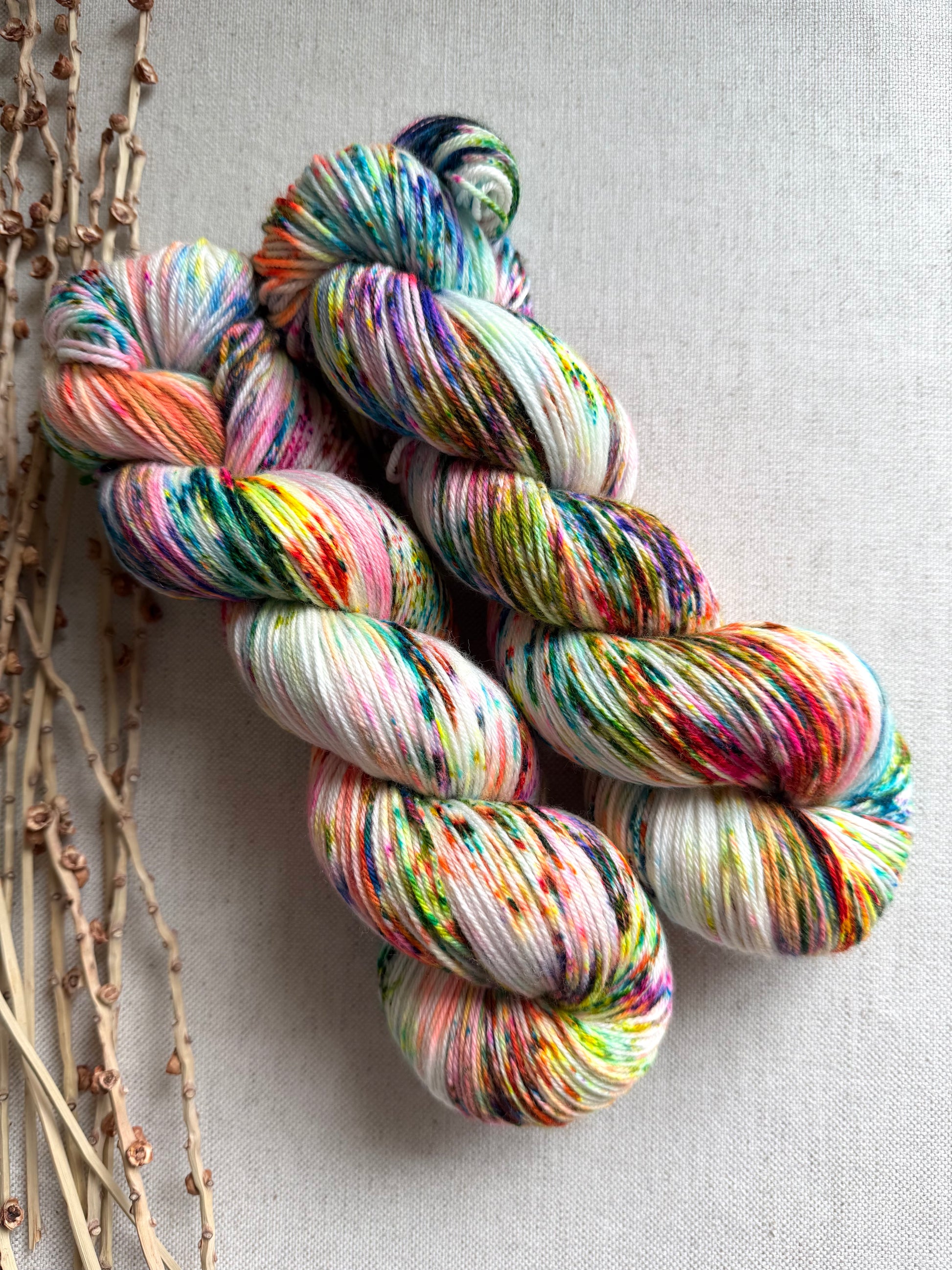This 85% Superwash Merino 15% Nylon is my best seller. I’ve had rave reviews from my customers and rightly so. The softness of this yarn is due to the 19.5 micron count, extrafine merino. As a result, you get a yarn that’s gentle against the skin. Because of its ultra softness, it’s one of the most versatile yarns on the market. It works up beautifully in scarves, shawls, hats and sweaters but also has just enough nylon for durability when knitting socks and gloves. My favorites socks are knit with this yarn.
