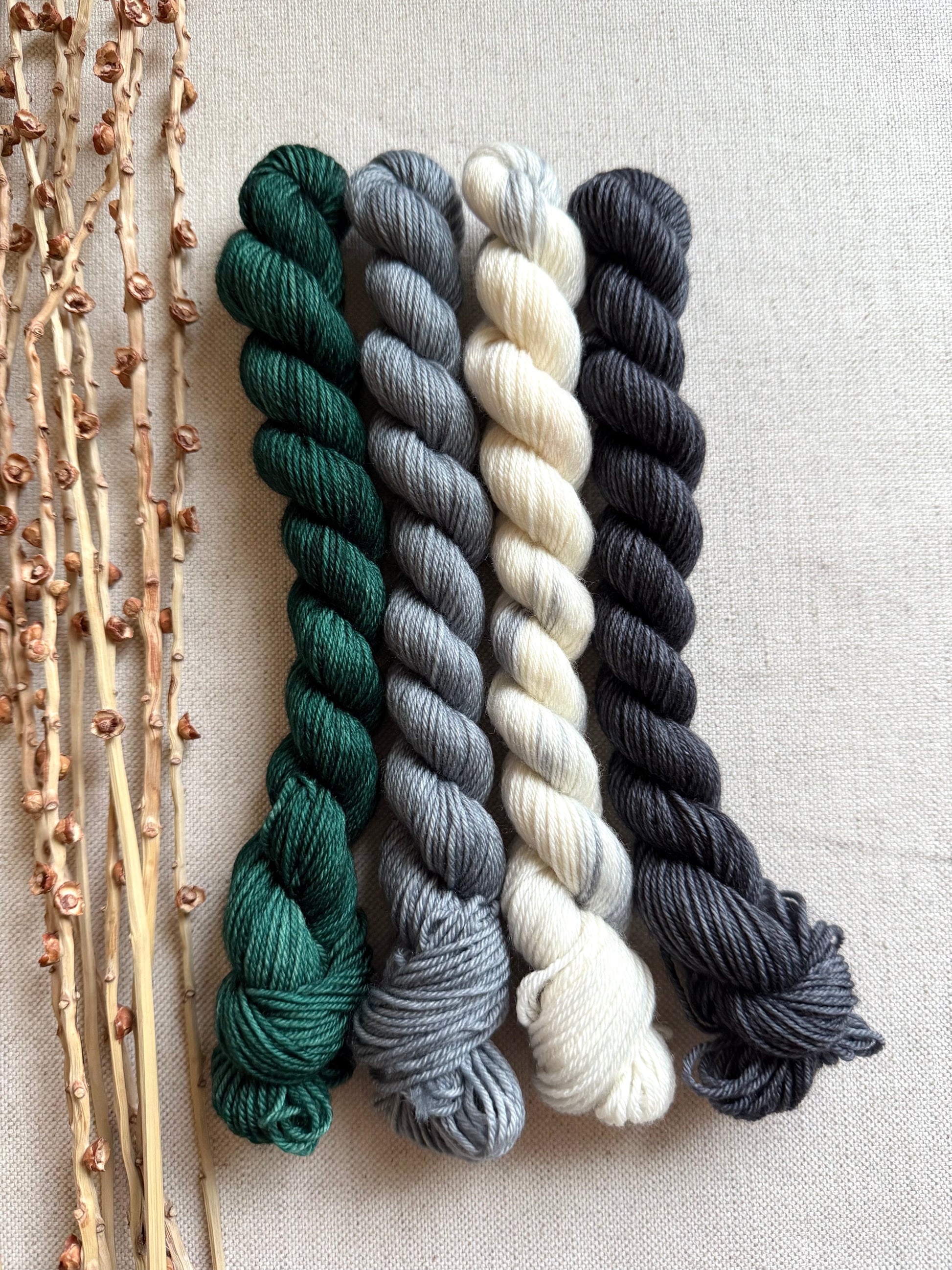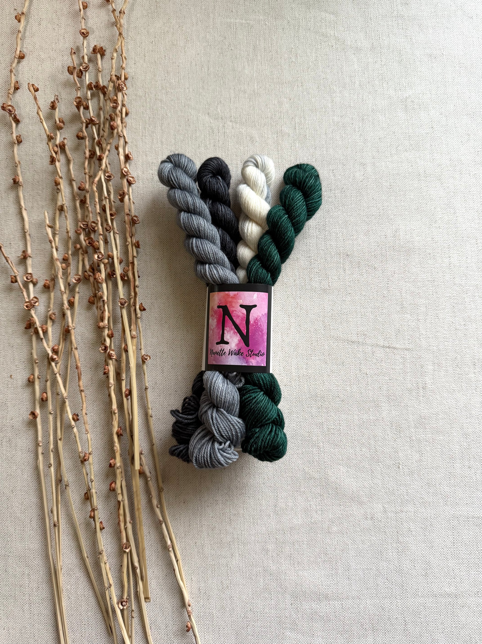 These mini skeins are 87 yards of super soft superwash merino nylon in speckled colors. As with most of my hand dyed yarn, they're one of a kind and not necessarily repeatable. They're the perfect about of yarn for knitting scrappy projects, gnomes, and other stuffed creatures.