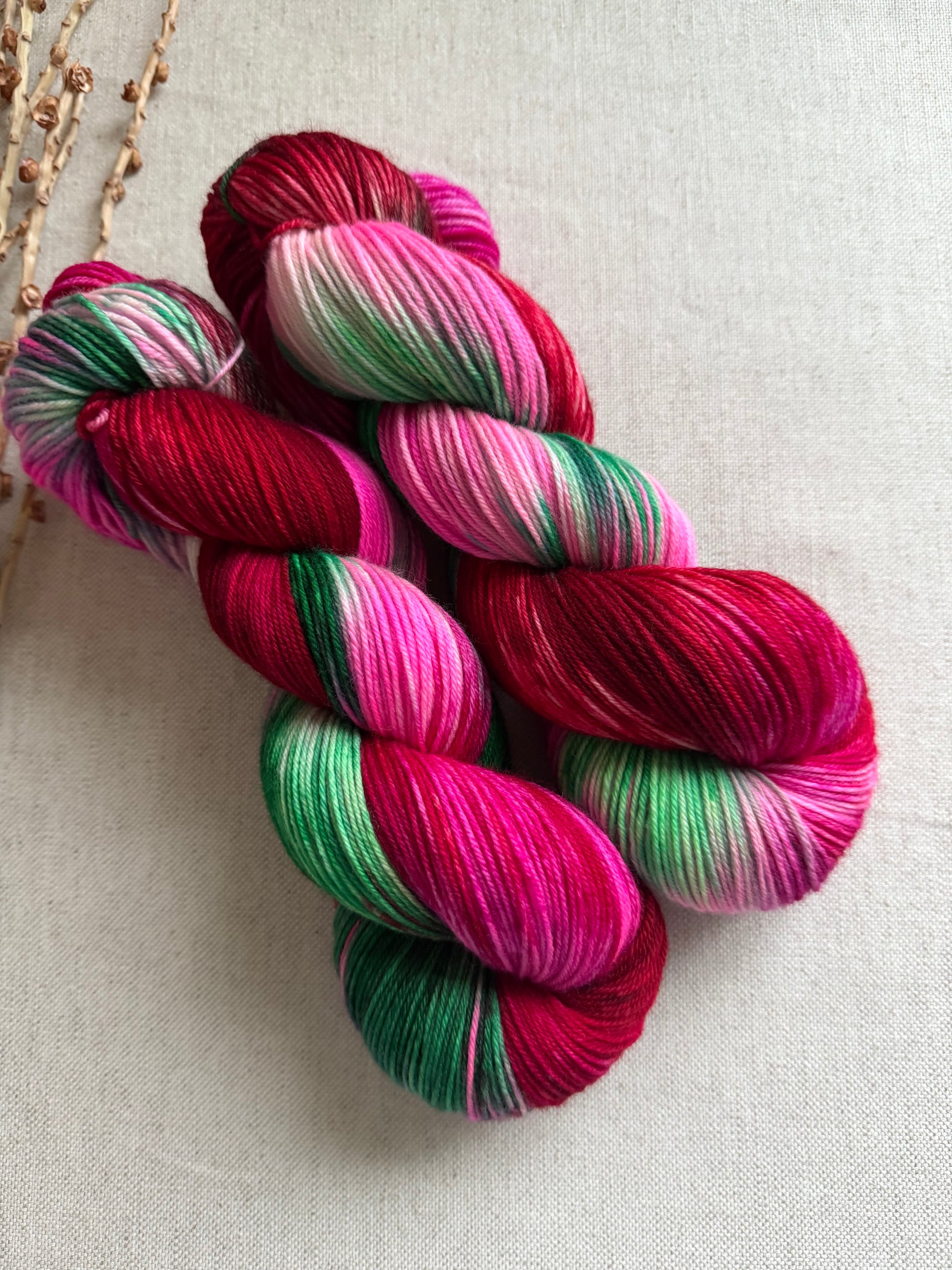 This yarns is super soft and squishy!! I just love it! Pure Luxury!!! My yarns are dyed with professional acid dyed and then heat set for long lasting color. Each skein is unique, one of a kind. I dyed in lots of one or two skeins so no two will be exactly the same. It's the perfect yardage for socks, shawlette, baby items or paired with other yarns in projects like the Find Your Fade Shawl.