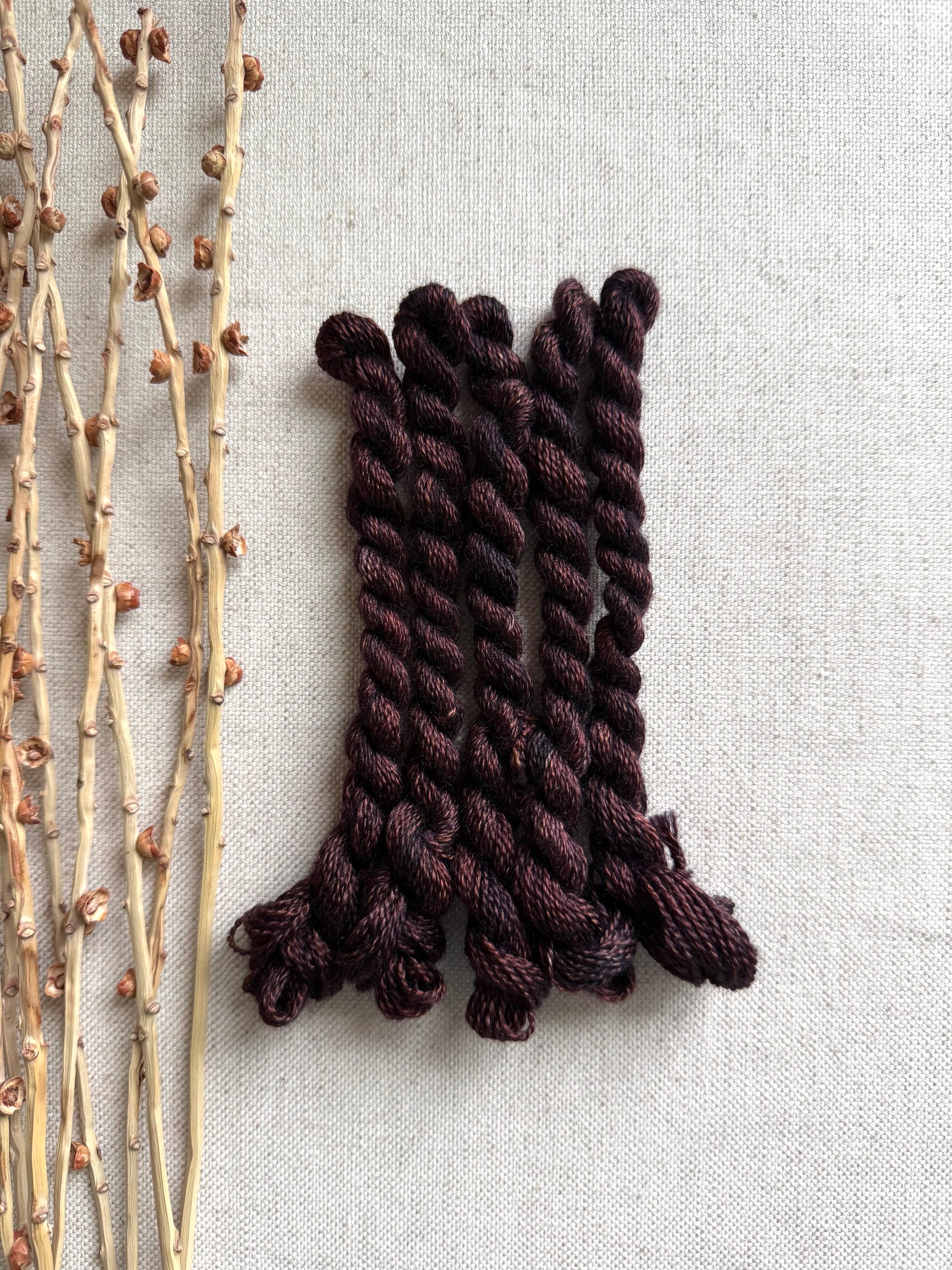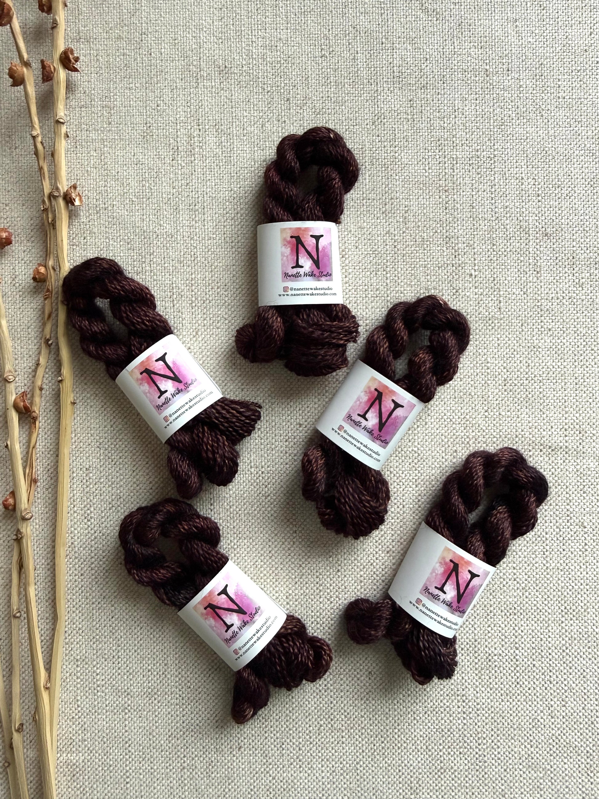 I'm so excited to be offering my NEW line of embroidery thread. I love sitting down with a few colors of embroidery thread, a piece of linen along with a needle and creating a needlepoint or stitchery creation. It's also just perfect for the mending projects like your hand knitted sock or you worn pair of jeans. This combination of BFL and silk is really lovely to work with. I'll be continually adding new colors as I dye them so check back often.