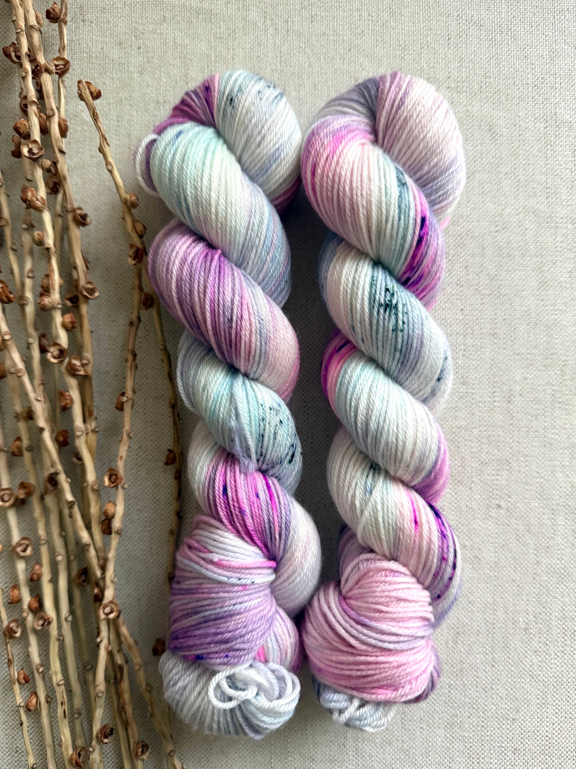 This 85% Superwash Merino 15% Nylon is my best seller. I’ve had rave reviews from my customers and rightly so. The softness of this yarn is due to the 19.5 micron count, extrafine merino. As a result, you get a yarn that’s gentle against the skin. Because of its ultra softness, it’s one of the most versatile yarns on the market. It works up beautifully in scarves, shawls, hats and sweaters but also has just enough nylon for durability when knitting socks and gloves. My favorites socks are knit with this yarn.