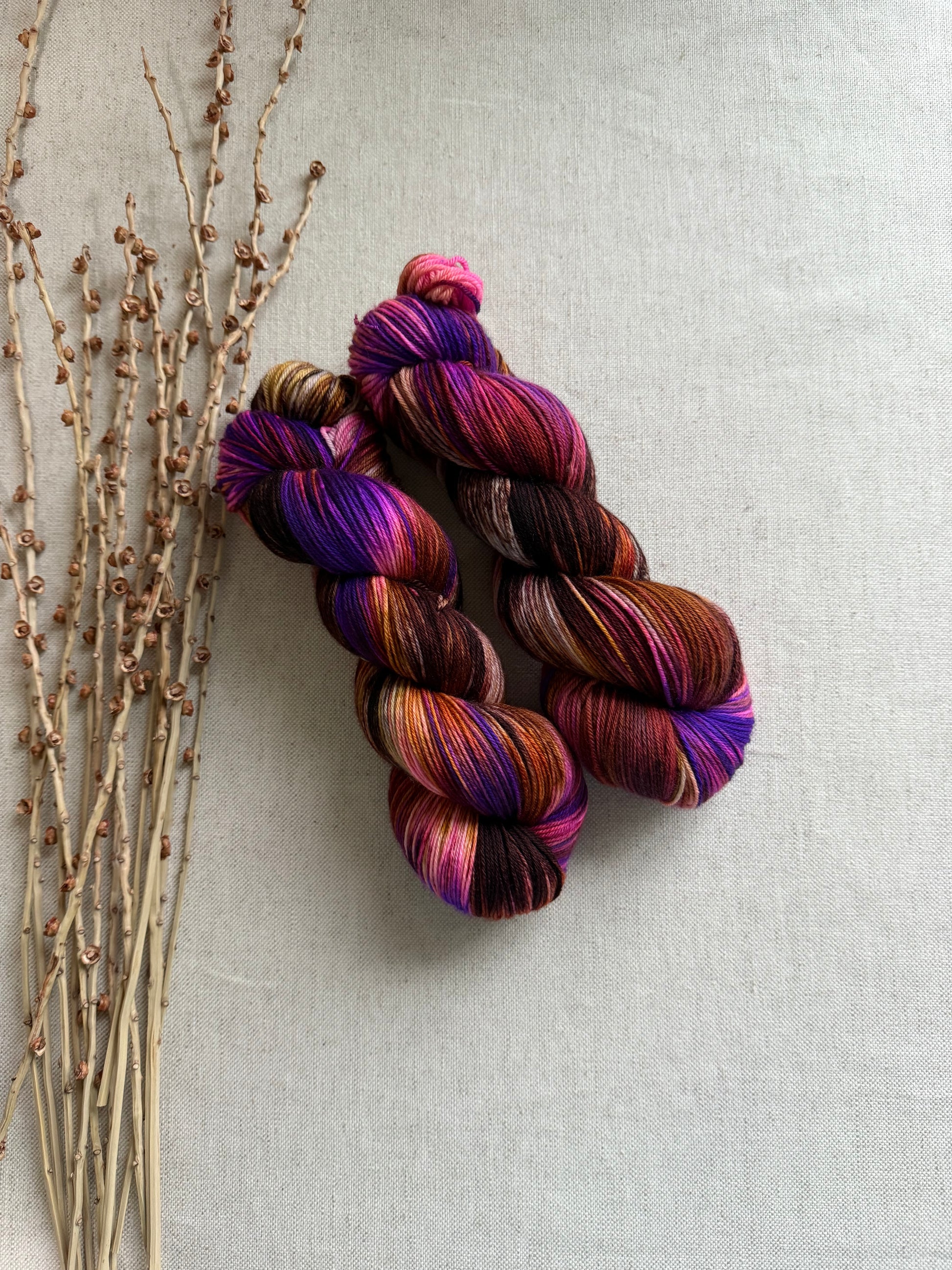 This yarns is super soft and squishy!! I just love it! Pure Luxury!!! My yarns are dyed with professional acid dyed and then heat set for long lasting color. Each skein is unique, one of a kind. I dyed in lots of one or two skeins so no two will be exactly the same. It's the perfect yardage for socks, shawlette, baby items or paired with other yarns in projects like the Find Your Fade Shawl.