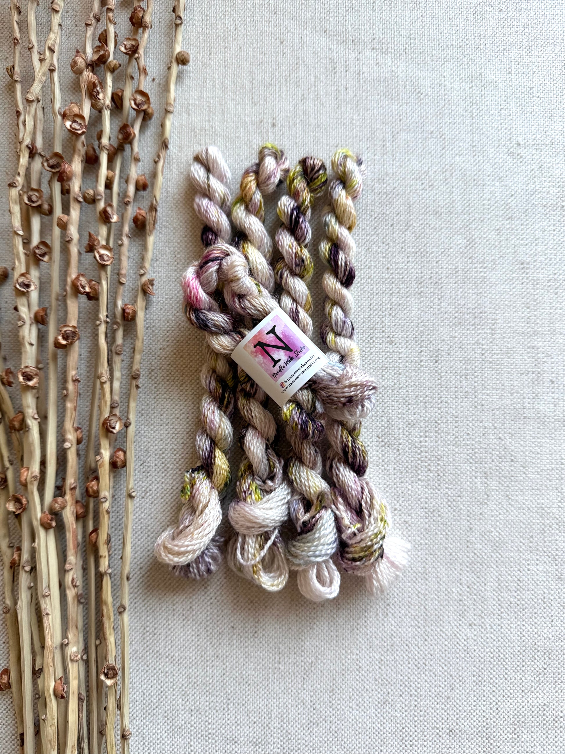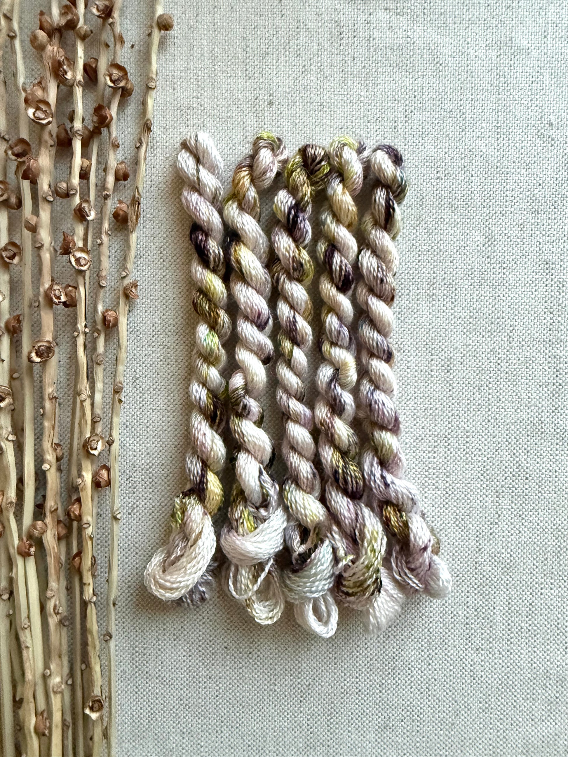 I'm so excited to be offering my NEW line of embroidery thread. I love sitting down with a few colors of embroidery thread, a piece of linen along with a needle and creating a needlepoint or stitchery creation. It's also just perfect for the mending projects like your hand knitted sock or you worn pair of jeans. This combination of BFL and silk is really lovely to work with. I'll be continually adding new colors as I dye them so check back often.