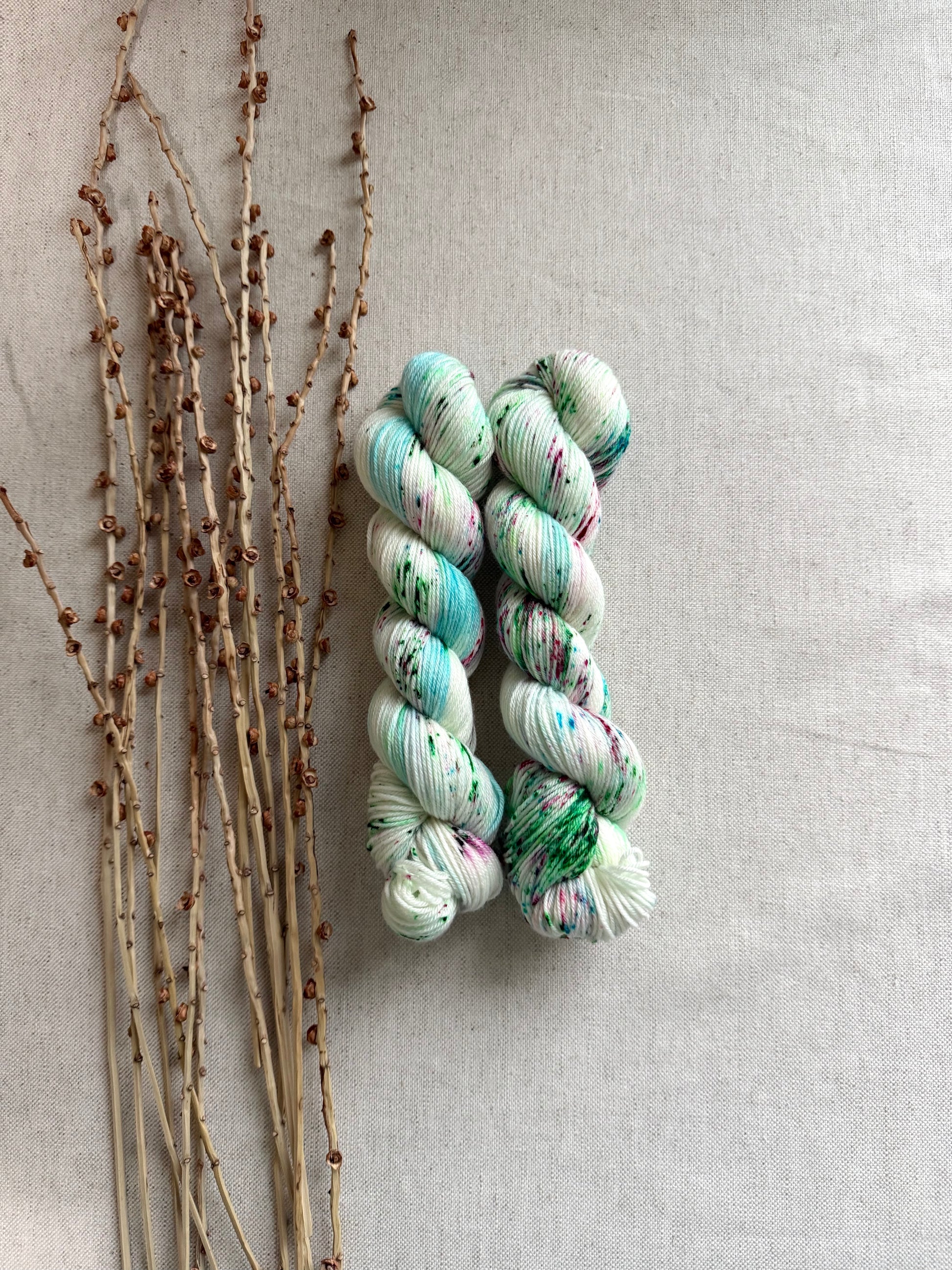 This 85% Superwash Merino 15% Nylon is my best seller. I’ve had rave reviews from my customers and rightly so. The softness of this yarn is due to the 19.5 micron count, extrafine merino. As a result, you get a yarn that’s gentle against the skin. Because of its ultra softness, it’s one of the most versatile yarns on the market. It works up beautifully in scarves, shawls, hats and sweaters but also has just enough nylon for durability when knitting socks and gloves. My favorites socks are knit with this yarn.